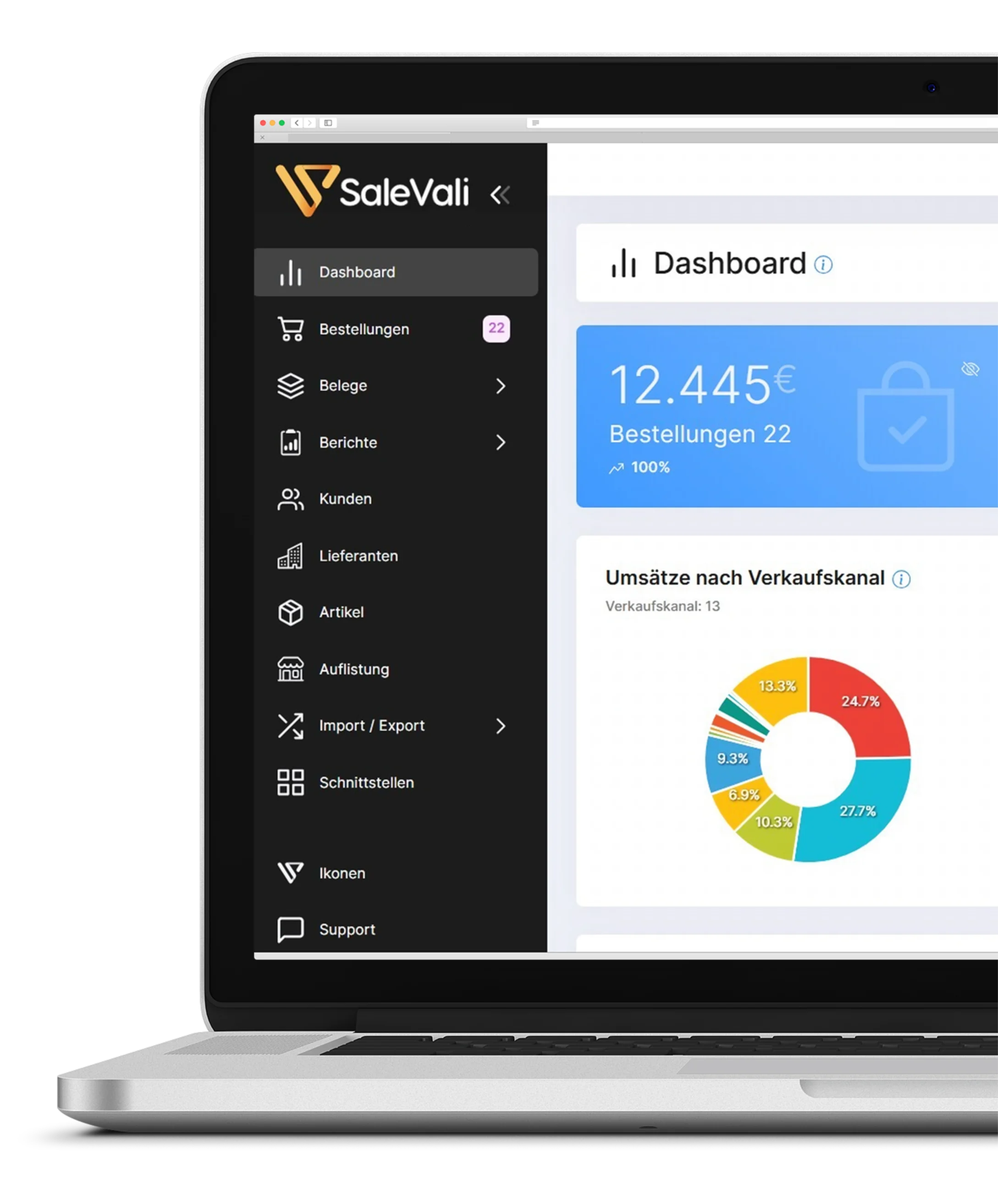 Neue Kanäle, neue Kunden und mehr Bestellungen - unternehmerisches Wachstum kostet Zeit. SaleVali bündelt deine Verkaufskanäle in einer Oberfläche und stellt dir alle Tools für die effektive Steuerung deines Unternehmens zur Verfügung.